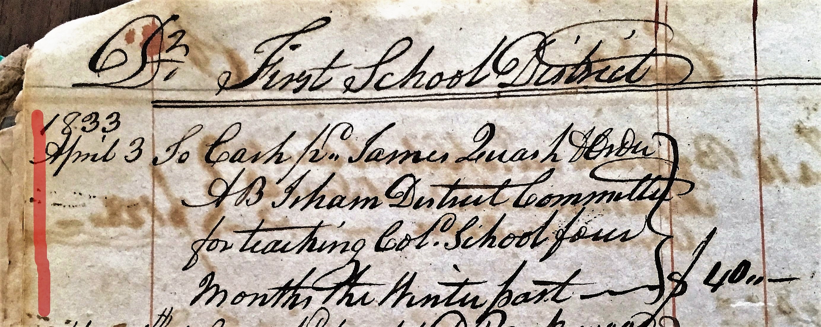 NEWSPAPER ARTICLE - "Negro School in Colchester". “The second teacher was a local colored man by the name of James Quash who taught from at least 1820 to 1840 The presumption is that Quash was an early’ pupil of Prince Saunders and succeeded him as master when he left. The records of the first school district show that Quash was paid $40 annually for teaching the school four months during the winter season I Outside his teaching Quash followed the trade of a stone mason specializing in foundations, dams, cisterns etc. He is said to have been a man of good conversation — a man of honor and integrity. Whatever job he undertook was well done. He took pride in his work. He resided on the Norwich road in the house now owned by Lucius Chapman. He died in 1886 at the age of 92.
